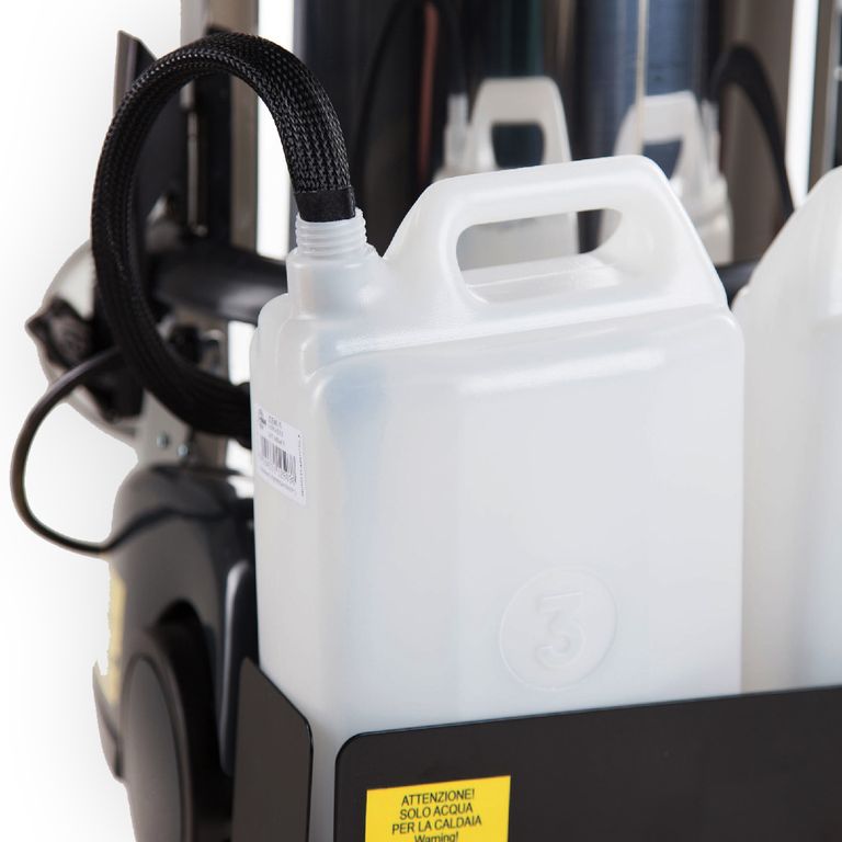Парогенератор EMILIO RA AUTO с комплектом аксессуаров для химчистки салона автомобиля, который сможет произвести все этапы чистки, а именно, сухую уборку пыли и грязи, нанесение моющего средства, обработку и дезинфекцию различных поверхностей пола, кресел и потолка паром, высасывание жидкой грязи с обивки. В комплект насадок входят только аксессуары, разработанные специально для чистки интерьера автомобиля.