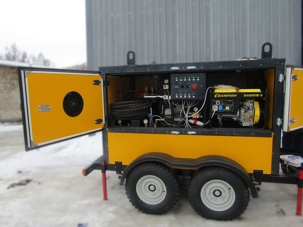 - Парогенератор выполнен в утепленном боксе с баком для воды и дизельного топлива, пистолетом для пара, паропроводом 20 метров бензиновым генератором, для работы не требуется никаких дополнительных подключений энергоносителей.