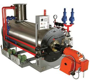 Предназначен для выработки насыщенного водяного пара от 115 °С до 204 °С с давлением выше атмосферного за счет теплоты, выделяющейся в результате использования энергии горения природного газа.